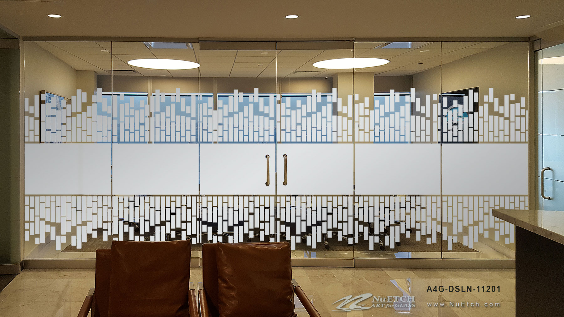 NuEtch Privacy Stripes for Conference Room Glass. Frosted film designs provide privacy for Office Glasas. Distraction4Glass by...